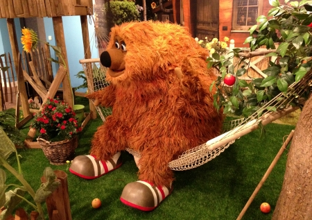 Der Bär war zu groß für eine Vitrine, rechts im Hintergrund stand übrigens Rumpels Fass.