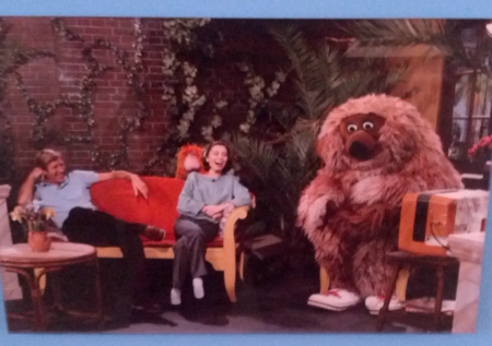 Fotos aus verschiedenen Jahren der Sesamstraße hingen an den Wänden.