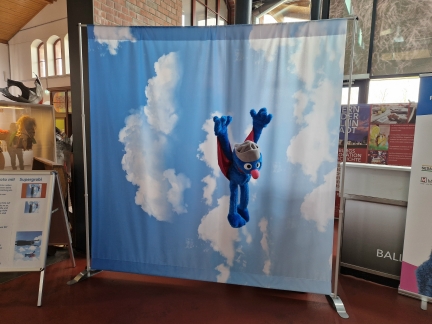 Im Hauptraum sind eine Vielzahl von großen Pappbildern mit Infos. |