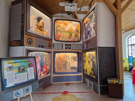 Ein Teil der Ausstellung widmet sich der internationalen Sesamstraße. |