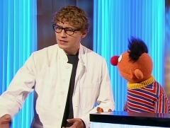 Der Star-Geiger David Garrett trat bereits zweimal in der Sesamstraße auf. Er musizierte mit Ernie und Bert und erklärte Begriffe mit Elmo. |