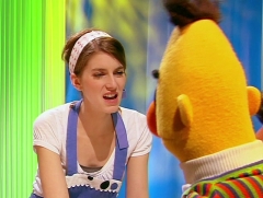 Die Sängerin Helene Fischer sang mit Ernie und Bert ein Weihnachtslied und erklärte in der gleichen Folge mit Elmo später, was Fehler sind. |