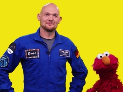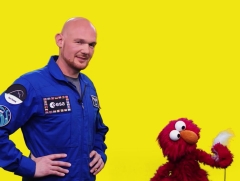 Der Astronaut Alexander Gerst erklärte mit Elmo das Wort "schwerelos". |