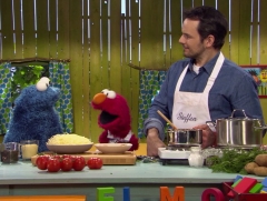 Zusammen mit Krümelmonster und Elmo kochte Steffen Henssler im Baumhaus und machte Quatsch mit Grobi. |