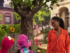 Die Sängerin Namika trommelte alle Sesamstraßen-Bewohner zusammen, um mit ihnen zu singen. |