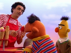 Der unterhaltsame Opernsänger Rolando Villazón spielte im Jahr 2013 in der Sesamstraße einen Eisverkäufer und erklärte 2014 mit Elmo ein Wort. |