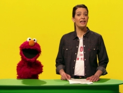 Linda Zervakis erklärte Elmo, was Nachrichten sind. |