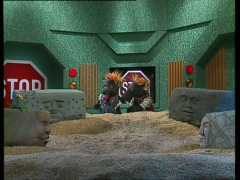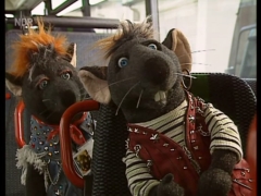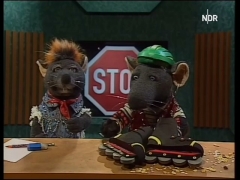 Die lustigen Verkehrsmäuse, die bereits in den Geschichten der Busfamilie vorkamen, erhielten 1998 ihre eigene kleine Show-Reihe namens "STOP". Es ging jeweils um ein Thema aus dem Straßenverkehr. Manchmal gab es Studiogäste, doch meistens zeigten sie eigens produzierte Einspielfilme. Am Ende jeder Ausgabe sangen die beiden Mäuse ein passendes Lied.