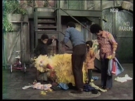 Oscar hat eine eine Erkältung eingefangen. Die Bewohner der Sesamstraße versuchen, ihm zu helfen. |