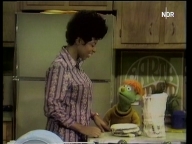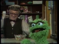 Oscar lässt sich von Susanne allte Zutaten für seine speziellen Kekse geben. Krümelmonster darf sie kosten. |