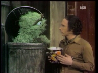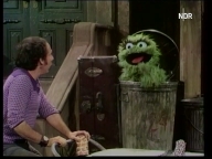 Oscar baut einen lauten Müllkasten. |