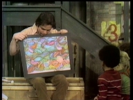 Die Sesamstraße hat einen Musiker zu Gast. Bevor dieser singt, stellt er Bibo einige Rätsel. |