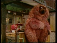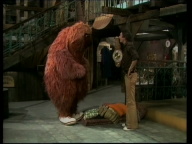 Samson soll für Tiffy etwas aus der Werkzeugecke holen. Dort hört er ein unheimliches Geräusch und kehrt um. Aber Angst hat ein Samson natürlich nicht, behauptet er. |