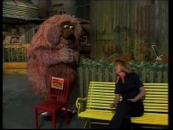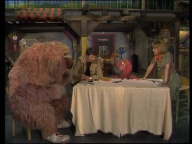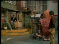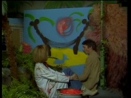 Samson und Tiffy wundern sich, dass Henning und Lilo sich ein Theaterstück ansehen wollen, dessen Inhalt sie schon kennen. Davon inspiriert spielen Samson und Tiffy im Palmengarten Ehemann und Ehefrau. |