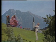 Samson und Tiffy wollen Henning und Lilo als Gespenster erschrecken. Leider erschrecken sie sich zunächst vor sich selbst. |