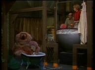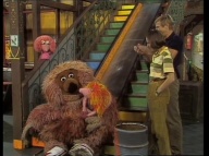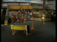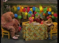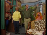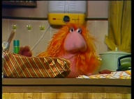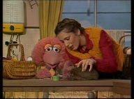 Gaby aus der Klim-Bim-Familie kommt in die Sesamstraße und hat für jeden Bewohner ein Geschenk mitgebracht. |