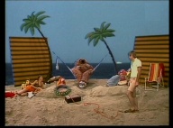 Lilo, Samson und Tiffy wollen an den Strand gehen. Dort angekommen fängt es direkt an zu regnen. Die Stimmung geht dementsprechend runter. |
