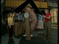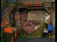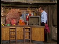 Manfred eröffnet im Sesamstraßen-Studio seinen eigenen Kiosk. |