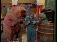 Früh am Morgen findet Samson eine Badewanne in der Sesamstraße. Zusammen mit Tiffy und Rumpel überlegt er, was das soll. |