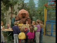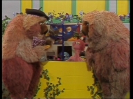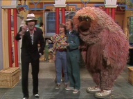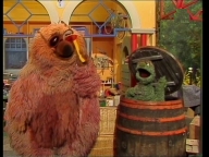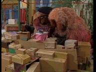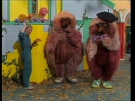 Tiffy veranstaltet mit Samson und Simson eine Schnitzeljagd quer durch die Sesamstraße. |