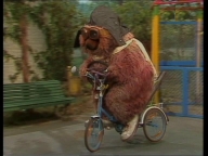 Weil Schorsch ein Bild seines Traumautos hat, möchte Samson ein Traumfahrrad haben. Er fährt Rumpel später damit umher. |
