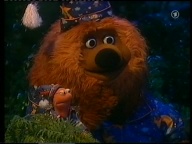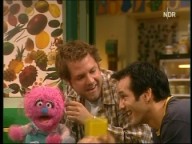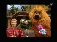 Abendstimmung in der Sesamstraße. Finchen und Samson treffen heute auf den Sandmann. Besonders von seiner schönen Saxophonmusik sind sie begeistert. |