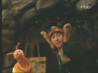 Rumpel hat einen Roboter gebaut. Leider ist dabei etwas schief gelaufen, denn der Roboter ist zu allen Leuten sehr nett und hilfsbereit. |
