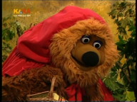 Die Freunde spielen heute das Märchen Rotkäppchen nach. |