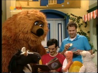 Ein Regal in Nils' Laden ist kaputt. Doch zum Glück kommt ein Vertreter-Hase und will ihm ein neues verkaufen. Rumpel meint, dass er aber ein besseres bauen kann. Der Stabilitätstest soll es zeigen. |