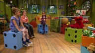 Heute sprechen Elmo und die Kinder zusammen Zungenbrecher und achten dabei darauf, dass ihre Zunge sich nicht verknotet.
