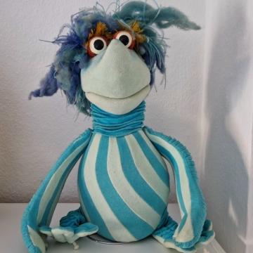 Er kam im Jahr 1986 als der Fremde ins Runddorf und sorgte bis 1991 als gern gesehener Besucher immer wieder für frischen Wind bei "Hallo Spencer". Egidius Soltanelle gründete sogar eine kleine Firma mit Nepomuk. Die Originalpuppe zog 2024 zu mir und ist für ihr Alter noch in einem tollen Zustand. Egi hat neue Kleidung bekommen, die seinem damaligen Stil entspricht.