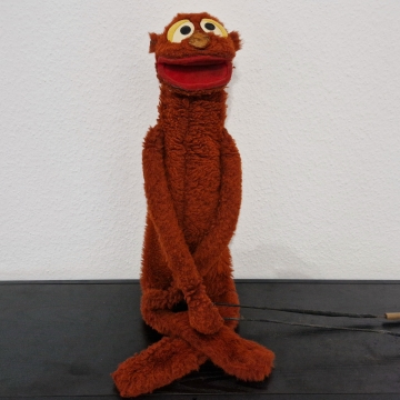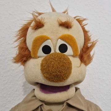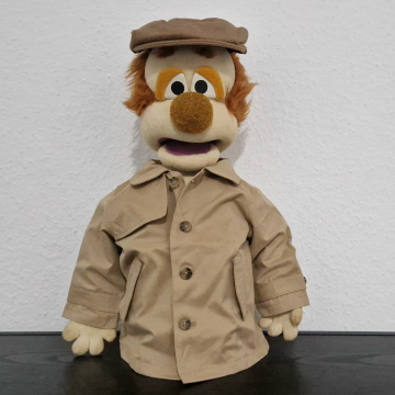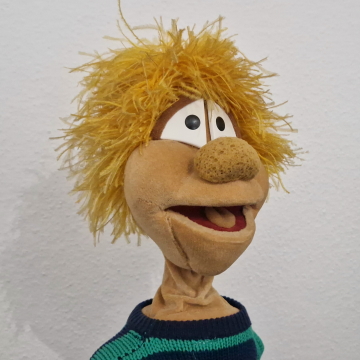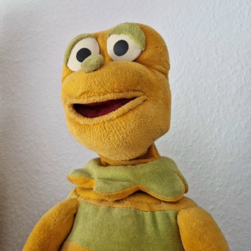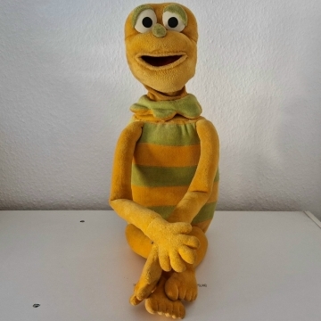 Willkommen Kasi! Diese Originalpuppe aus den ersten 59 "Hallo Spencer"-Folgen der Jahre 1979 bis 1984 hat Fernsehgeschichte geschrieben. Er sang das berühmte Fahrstuhllied, verteilte Gummibärchen und fürchtete sich vor Nero. Gespielt wurde Kasi vom viel zu früh verstorbenen Herbert Langemann. Unforgettable. Die Nase nach 45 Jahren nicht mehr perfekt, ansonsten ist die Figur jedoch erstaunlich gut erhalten.