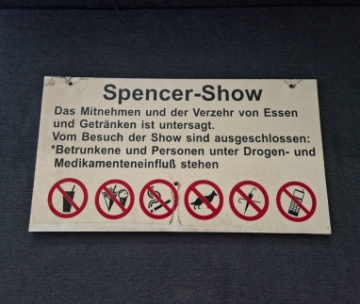 Schild der "Hallo Spencer"-Show, das von 2004 bis 2016 im Heide Park Soltau ging. |