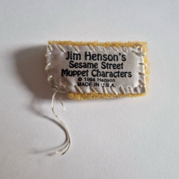 Schaumstoff mit Schild, welches in jeder Original Sesamstraßen-Puppe eingenäht ist, aus dem Jahr 1994. |