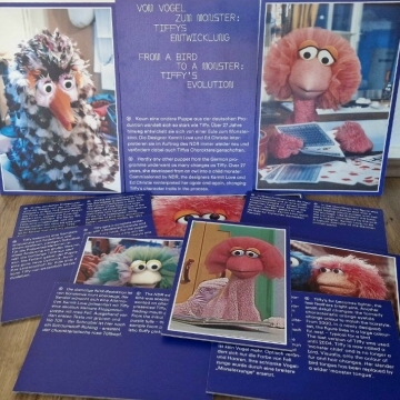 Schautafeln zur Figur Tiffy und das Plonsters-Set aus der Ausstellung zum 50. Geburtstag der Sesamstraße des Museums für Kunst und Gewerbe Hamburg aus dem Jahr 2023. Fotos von damals findet ihr unter dem Menüpunkt Ausstellungen. |