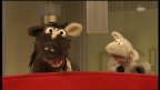 Samson und Tiffy treten zusammen mit anderen Puppen des Kinderfernsehens bei Heinz Schenk auf und singen ein Lied.