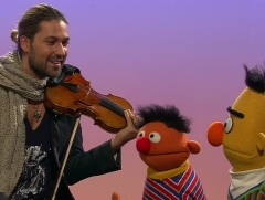 Der Star-Geiger David Garrett trat bereits zweimal in der Sesamstraße auf. Er musizierte mit Ernie und Bert und erklärte Begriffe mit Elmo. |