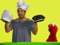 Der unterhaltsame Opernsänger Rolando Villazón spielte im Jahr 2013 in der Sesamstraße einen Eisverkäufer und erklärte 2014 mit Elmo ein Wort. |