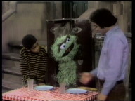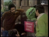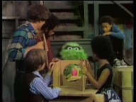 Oscar hat eine eine Erkältung eingefangen. Die Bewohner der Sesamstraße versuchen, ihm zu helfen. |