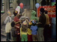 Die Sesamstraße feiert den Geburtstag von Herrn Huber. |