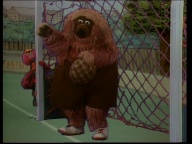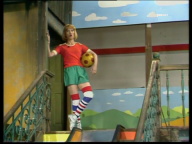 Samson baut einen Trimm-Dich-Pfad auf. Tiffy behauptet, dass es eine Hürde gäbe, die nur sie nehmen kann und baut diese in der Küchenecke mit Hocken auf. |