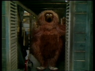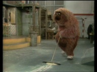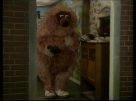 Samson soll für Tiffy etwas aus der Werkzeugecke holen. Dort hört er ein unheimliches Geräusch und kehrt um. Aber Angst hat ein Samson natürlich nicht, behauptet er. |
