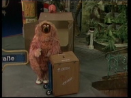 Zwei Kisten werden im Studio abgestellt. Samson und Tiffy spielen damit Verstecken. |