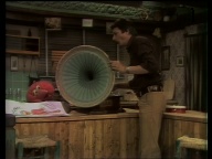 Die Freunde spielen Domino. Samsons Stuhl bricht am Ende der Folge zusammen. |