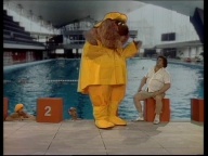 Die Freunde gehen heute ins Schwimmbad. Der Bademeister möchte Samson jedoch nicht ins Wasser lassen. |