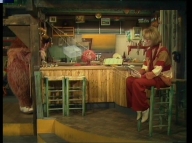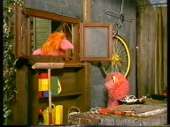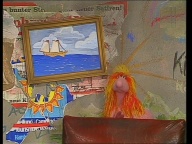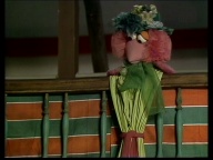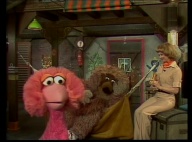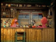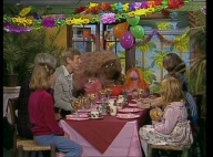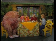 Gaby aus der Klim-Bim-Familie kommt in die Sesamstraße und hat für jeden Bewohner ein Geschenk mitgebracht. |
