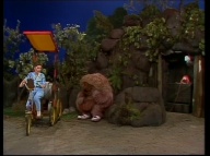 Samson behauptet, er wäre nicht zu dick. Dann steigt der dicke Willem aus der Gondel und fordert Samson zum Wettlauf heraus. |