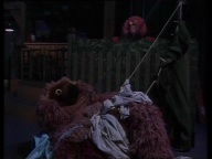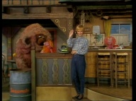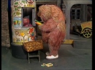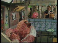 Manfred eröffnet im Sesamstraßen-Studio seinen eigenen Kiosk. |