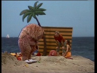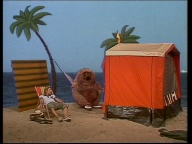 Lilo, Samson und Tiffy wollen an den Strand gehen. Dort angekommen fängt es direkt an zu regnen. Die Stimmung geht dementsprechend runter. |