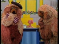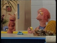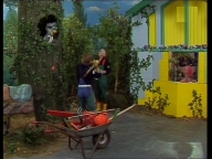 Tiffy veranstaltet mit Samson und Simson eine Schnitzeljagd quer durch die Sesamstraße. |